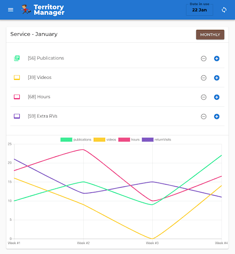 - Track/record hours, publications, video showings, extra RVs