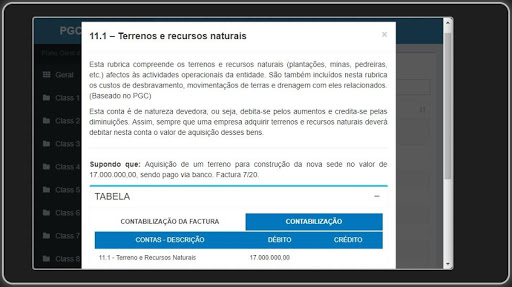 Funkcja ta składa się z ram i listy rachunków opartych na ogólnym planie księgowemu zatwierdzonym przez dekret nr 82/2001 16 listopada i będzie również miała włączenie kont VAT. Ta funkcja pozwoli użytkownikowi skonsultować się z kontami, gdy chcesz. Popraw postrzeganie notatek.