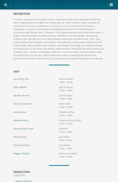 - Series: GENERAL INFO, DESCRIPTION, CAST, PRODUCTION, EPISODES, EPISODE LIST, AWARDS.