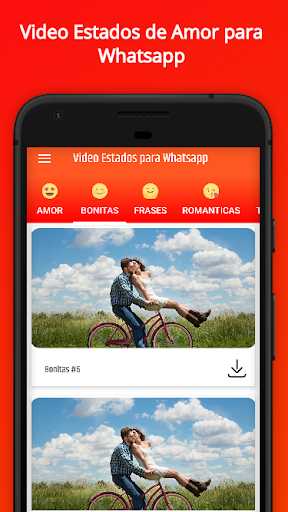 Video estados para whatsapp 2020 trae los videos de amor en mas de 5 categorías diferentes momento todos los días. Hecho para ser simple y fácil de usar, solo 1 clic para que descargue videos de amor, bonitos, románticos, tristes, etc... y otros temas a la galería de su teléfono celular o para compartir en sus grupos e incluso en su estado de WhatsApp.
