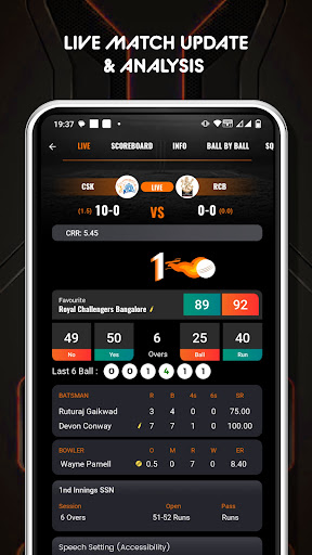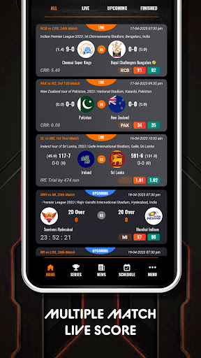 🔔 Stay updated on every ball, every run, and every wicket with our live scorecard feature. You can enjoy Catch multiple live cricket match scores on one screen. We provide a detailed live cricket scoreboard with the player's run, wicket, four, six, strike rate, and economy.
