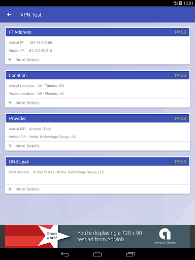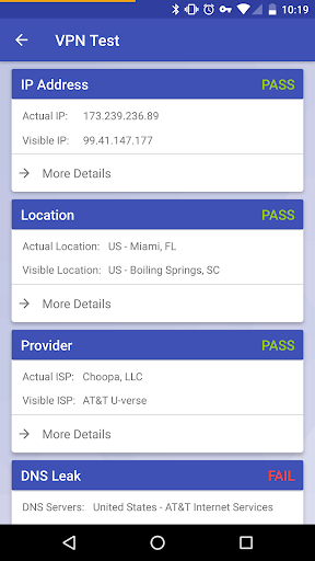 IP address, location, ISP, and DNS leaks are all checked to make sure everything is working as it should.