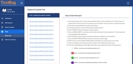 TestBag provide CAT Free online Sample Mock Practice Test Papers, Test series, old Paper & many more based on latest Exam Pattern and syllabus