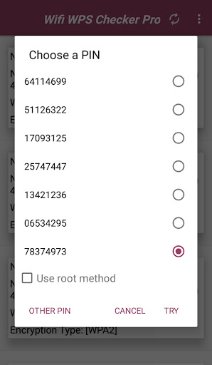 this app uses these pins to try to connect to the network and check whether it is vulnerable. it implements known algorithms for pin generation and it also tries the default pins for that vendor. it can calculate the default pin for some modems.