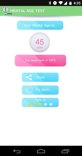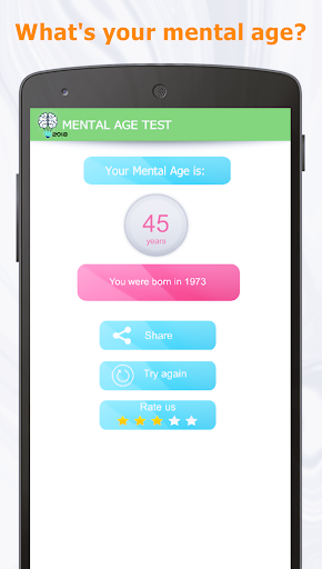 The result has nothing to do with your Intelligence Quotient. For the purpose of this test, we define Mental Age as a measure of a person's psychological abilities in comparison to the number of years it takes for an average child to reach the same level.