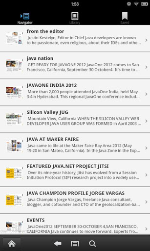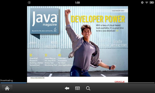 Go mobile with Java Magazine Java Magazine is an essential source of knowledge about Java technology, the Java programming language, and Javabased applications for people who rely on them in their professional careers, or who aspire to. MAGAZINE FEATURES: Current and past issues of Java Magazine, absolutely free Textformatted articles designed for maximum mobile readability. download each issue, then return any time for offline reading. search the archive of available issues. bookmark your favorite articles. Share your comments with other readers Issues will be available for download on a bimonthly basis. About Texterity This application is powered by Texterity, a leader in digital publishing technology, provider of hundreds of online digital publications, and coverleaf.com. Check the app store for more apps from your favorite magazines