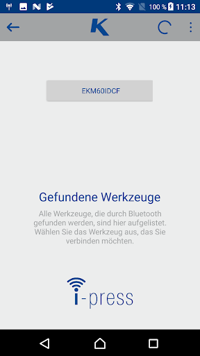 ด้วยแอพ I-Press คุณสามารถตั้งค่าบนกรงเล็บของคุณ Greenlee หรือ Sherman Reilly เครื่องมือและอ่านข้อมูลเครื่องมือในการทำเช่นนี้คุณต้องเปิดใช้งานบลูทู ธ และเชื่อมต่อเครื่องมือเข้ากับสมาร์ทโฟนหรือแท็บเล็ตของคุณหากการเชื่อมต่อเปิดใช้งานมีความเป็นไปได้ที่จะแสดงข้อมูลเครื่องมือเช่นจำนวนการกดหรือชั่วโมงการทำงานแอพ I-Press ยังอ่านโปรไฟล์ผู้ใช้ที่เก็บไว้ในเครื่องมือและช่วยให้สามารถเปลี่ยนได้