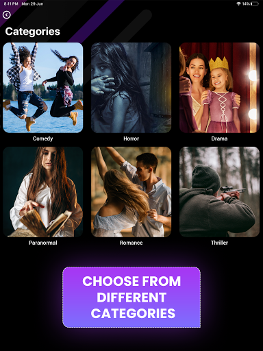 • Comedy, horror, drama, romance, and lots of different categories to don’t get bored when reading.