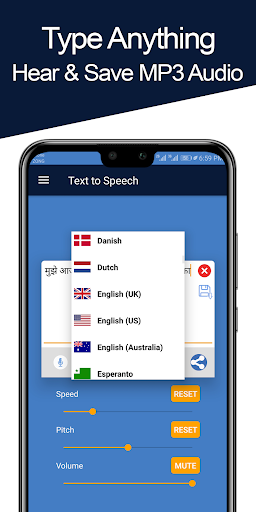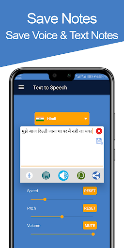 You can adjust speed and pitch of the voice. This app is suitable for all those who do not have time to read all the text in the document. Just paste your text into our app and it will do the rest and convert your text into voice notes. You can save them too for future reference. The best feature of this app is that you can save voice notes of your text files.