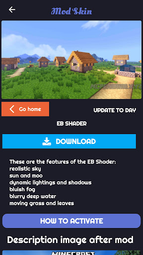 Realistic shaders for Minecraft pe makes everything you build in the game more beautiful and impressive with the help of mild . Shader map for Minecraft may require more RAM, but if you like realistic texture packs for minecraft pe and your device is very slow on big maps, you may prefer the 4x4 textures instead. That drastically improves a performance, while keeping the beautiful mods for minecraft.