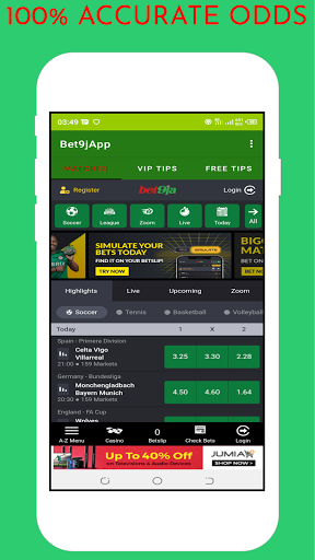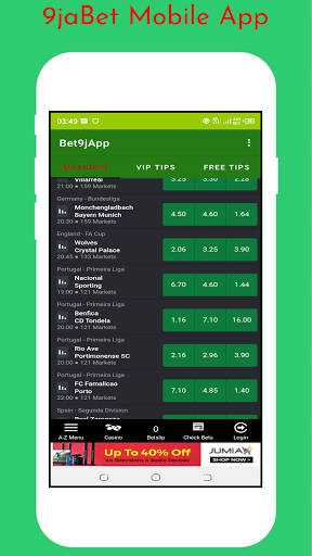 9jaBet mobile App provides 100�t ACCURATE VIP betting tips download App. We offer betting tips for both old and new 9jabet. For login , virtual , shop and winning code game prediction Download this app