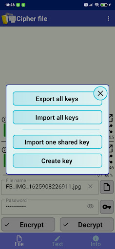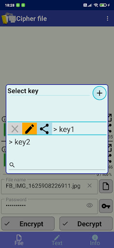 If you need to send files, pictures, texts sensitives and you don't want to be spied by your messaging application, then Cyrpter is the solution that you need. Encrypt your data with Crypter then send them easily with any another application.