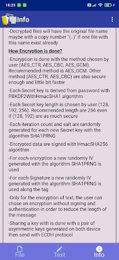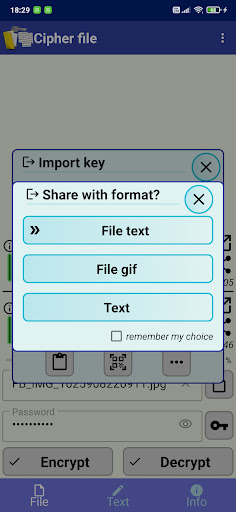 - When encryption is done, you have the possibility to share files and texts with an application of your choice (messaging app, cloud, ...)