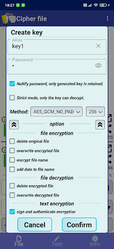 - You can encrypt/decrypt quickly and easily with one password or using the keystore with your prebuilt keys.