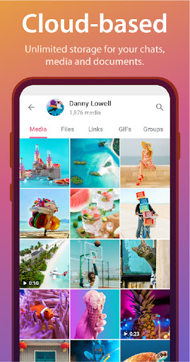 • Send text and voice messages, photos and videos, files, documents, links, GIFs, etc.;