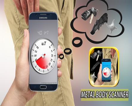 Metal body scanner is a measuring tool to detecting out iron and metal based items in human body fluctuations and interferences of the magnetic field.metal body scanner app its the must handy tool for security reasons. can find knife, pistols and other dangerous weapons in side the human body cloths pocket or bags