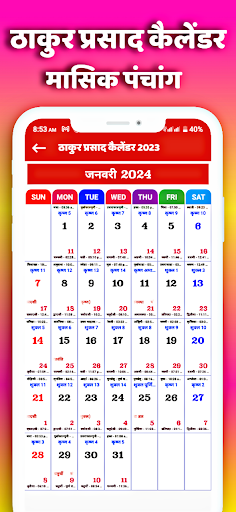थाकुर प्रसाद कैलेंडर 2024 - हिंदी कैलेंडर 2024 देशी पंचंग है, जो इंटरनेट कनेक्टिविटी की आवश्यकता है;उपयोग करने के लिए, निम्नलिखित सुविधाओं के साथ आता है