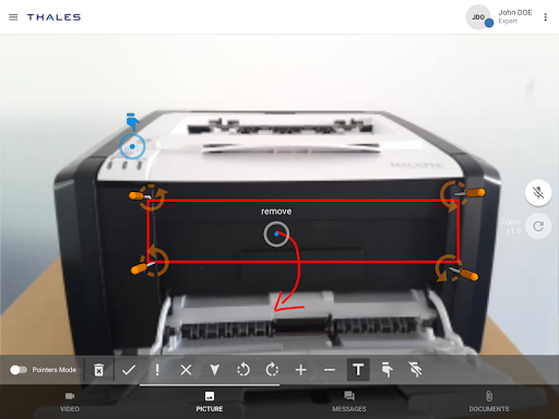 Thanks to a secure connection between the field and the center of expertise, the Thales Eye application allows experts to communicate instructions to technicians, direct them to particular areas and thus manage maintenance operations, remotely and in real time. .