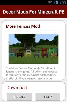 This Decor Mods For Minecraft PE is can only be applied with BlockLauncher application and you need install the full version of MCPE and BlockLauncher in your smartphone or tablet.