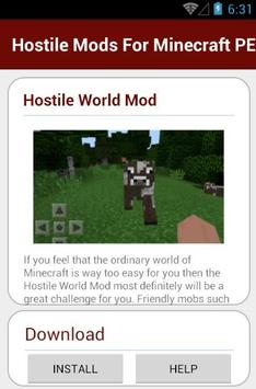 Hostile Mods For Minecraft PE When the moon rise and a shadow of darkness come there will be a greater chance of more hostile mobs spawning. Not only will there be a larger volume of hostile mobs, but they will also be much more dangerous as they will be able to have special buffs.