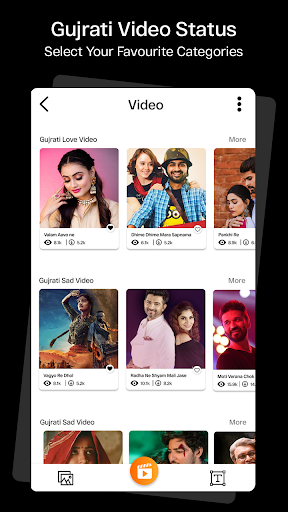 Gujarati Video status For WhatsApp has the large collection of status video categories like Love Video Status, Sad Video Status, Romantic Video Status, Song Video Status, Funny Video, Full Screen Video Status, Attitude Video Status, Cute Status, WhatsApp status video and 30 Seconds Lyrical Video for your WhatsApp story.