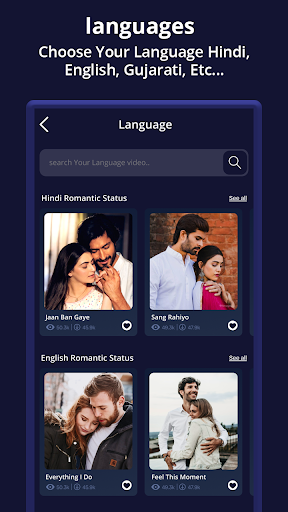 Romantic Video Status Free download videos from your favourite Romantic Video Status User or any popular model. Here we introducing totally new user interface where you feel comfortable with over millions of stunning Romantic video status and status song. in the modern time every obviously want to be cool and express their felling with different ways. So we thing let’s make an app who shows peoples felling with Romantic whatsapp status.