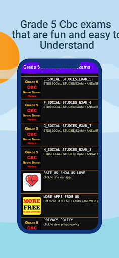 get Grade 5 social studies exams that are of cbc standards and that have used the cbc structure of setting exams and the mode of asking questions and answer structure also reflects the cbc exams so that Grade 5 can have a feel of quality and quantitative social studies exams are done and as a result preparing teachers and students for the unforeseen difficult circumstances that are often experienced when tackling social studies cbc exams