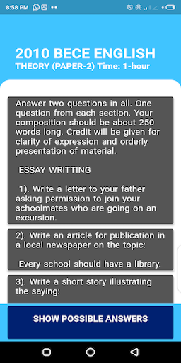 This app is a practice app for students preparing to take the BECE ENGLISH Examination.