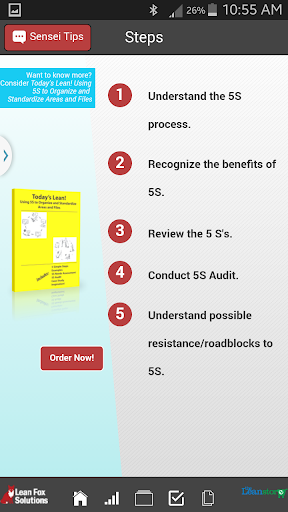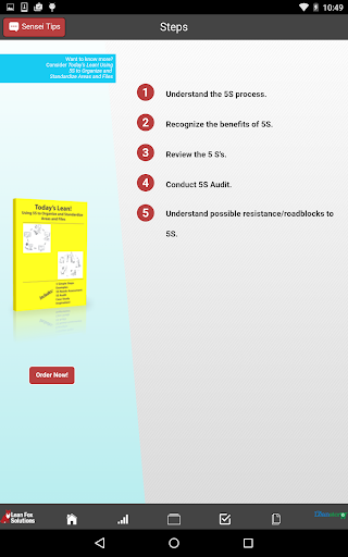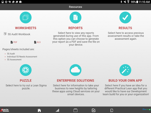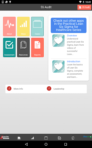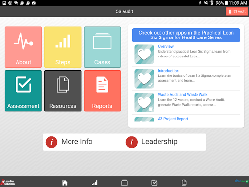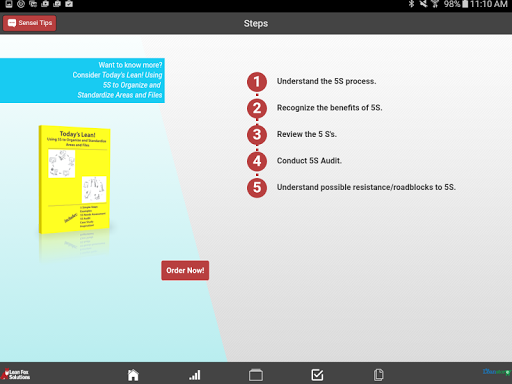 Learn the importance and simplicity of 5S, utilize guidelines to ensure each part of 5S is complete, generate 5S progress reports, and learn from the case studies. This app will explain the importance and simplicity of 5S (or 6S), utilize guidelines to ensure each part of the 5S is complete, generate 5S audit reports, and provide examples of successful 5S case studies. This app will help ensure physical areas and paperbased or electronic documents are systematically kept clean and organized. 5S provides all employees the opportunity to be involved in the Lean Six Sigma journey. 5S will improve the flow of work or services through eliminating wasteful layouts and processes for (1) physical elements such as work cubicles, doors, aisle ways, equipment, supplies, etc., (2) paperbased elements such as forms, work documents, reports, etc. and (3) electronic documents such as reports, emails, text messages, spreadsheets, hyperlinks, bookmarks, smart phone and tablet communications, etc. The basic principles of 5S equally apply to all three.