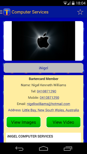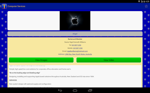 Once a trade service provider listing is selected, the user has access to a written description of the chosen trade service, images, video’s, direct call access, direct message access, direct e-mail access and built in location/navigation mapping service.