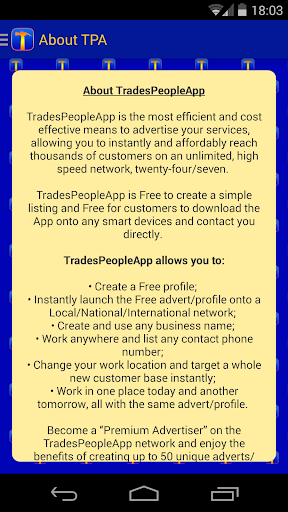 If you are a trades person please visit our site www.tradspeopleapp.com and find out how you can sign up for a FREE listing and be online receiving customer calls immediately.