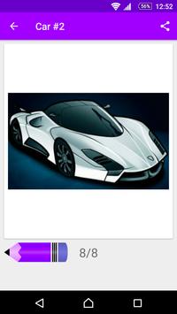 Our App provides a large collection of drawings including: Dodge Viper, SSC Ultimate Aero II, Mercedes-Benz, SUV, Sports Car, Pickup Truck, F1, Convertible, Lamborghini, Ferrari, Lamborghini Murcielago, Porsche, Porsche, 2013 Cadillac ELR, Old Car, Aston Martin Virage, Corvette and Trans Am.