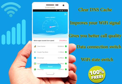 Clear DNS cache Improves your wifi signal Give you better call quality Data connection switch Wifi state switch