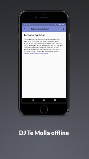 Aplikasi DJ Te Molla offline New ini adalah aplikasi musik mp3 yang berisi kumpulan Dj,Anda dapat menikmati fitur-fitur dari aplikasi DJ Te Molla offline New yang kami buat, praktis, sederhana, dan tentu saja ringan untuk ponsel Anda