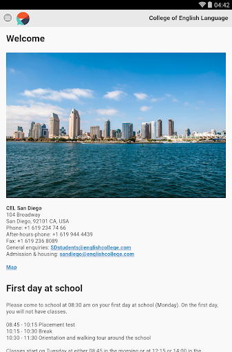 App for College of English Language students only. CEL offers English classes in San Diego and Santa Monica (CA, USA). App allows you to check your daily schedule, attendance, housing details plus all other news about CEL. We strongly recommend our students to download it.