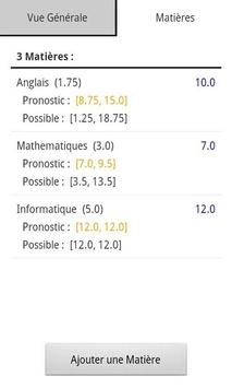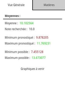 * Pronostiquer des notes et impact sur les moyennes (exemple : Note entre 5 et 15 au prochain devoir, de combien va varier la moyenne de la matière et celle de la session ?)