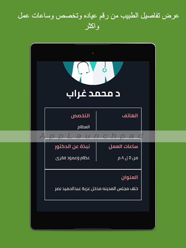 Ứng dụng này được dành riêng để biết các bác sĩ trong tất cả các ngành y tế bằng cách tìm kiếm chuyên môn hóa và sau đó xem danh sách các bác sĩ và hiển thị các chi tiết của phòng khám của bác sĩ như giờ làm việc, phương thức giao tiếp, địa chỉ và v.v.