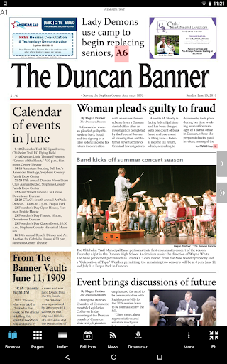 Take the Duncan Banner with you wherever and whenever you go. Your community resource for news, commentary, photos, video and special features is evolving. Access it now and take off with our award-winning breaking news, sports, weather and more. The app is free to download, but subscribers can receive the Duncan Banner daily edition or access premium mobile content for one low monthly rate. Not a subscriber yet? Access limited content each month for free, and upgrade at your convenience.