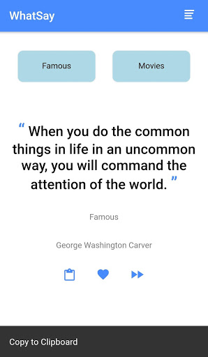 WhatSay is the quotation based app. We educate and entertain audiences of all ages with family-friendly quotations from history's most prominent figures - famous celebrities. We are passionate about quotes, and on a mission to share knowledge with the world.