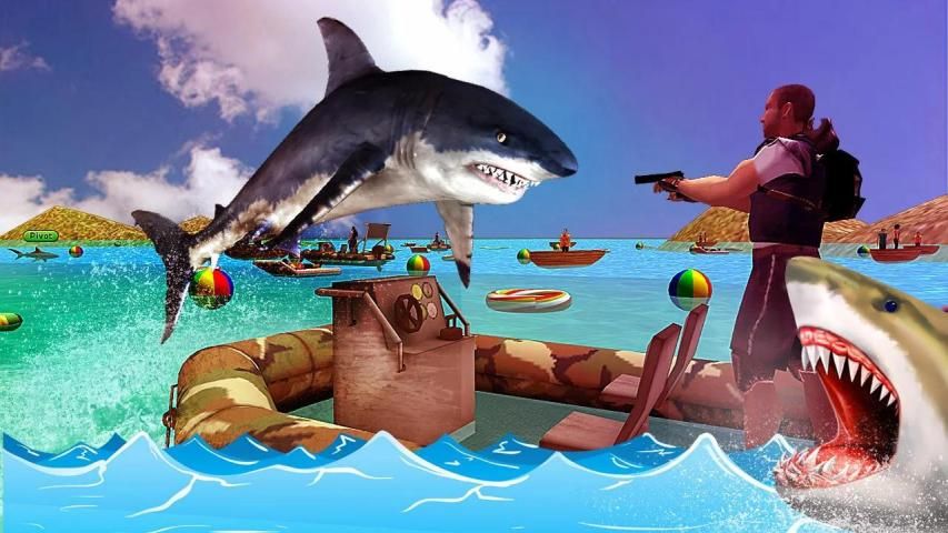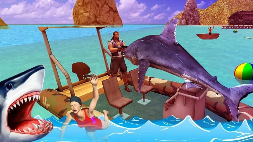 The sharks are ready to attack. It’s never safe to enter the water. Be the deadly shark and attack humans on the beach.