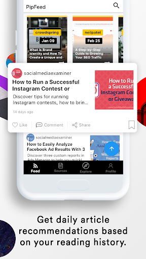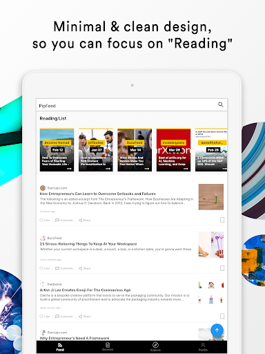 Now you can save time and energy finding the best newspaper online and articles to read based on your interests. Pipfeed combines news reader and article reader features into one powerful app that brings you the best and most up to date articles and news on one app. You can read sports news, latest US news, world news, articles on tech blogs, art, travel, leisure, and many other topics. You can get smarter and broaden your perspective while enjoying yourself with well written articles and news from trusted source and avoid. Elevate your reading experience with PipFeed today, the best news feed and article readers for you.