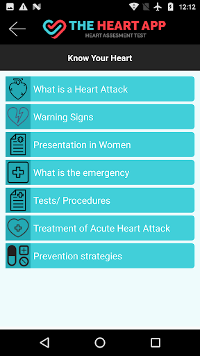 The Heart App© aims to help people find out if they are at risk of, or are developing a heart attack based on some questions regarding their seemingly serious or not so serious chest complaints. These questions try to mimic the sequential procedure that heart-specialists follow while diagnosing a patient. The Heart App© can also be of use to paramedical staff operating in field.
