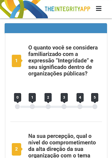 TheIntegrityApp is an app for the self-evaluation of integrity programs. By answering a simple and practical questionnaire you will receive a score between 0 and 100 that indicates your company’s / instutition’s degree of implementation of integrity practices. It is important to note, however, that the app is not able to issue certification. After the results are obtained, you will have free access to content that helps you to implement or improve your integrity program. TheIntegrityApp is an app developed by the Alliance for Integrity, an initiative implemented through the Deutsche Gesellschaft für Internationale Zusammenarbeit (GIZ) GmbH.