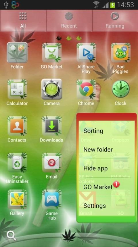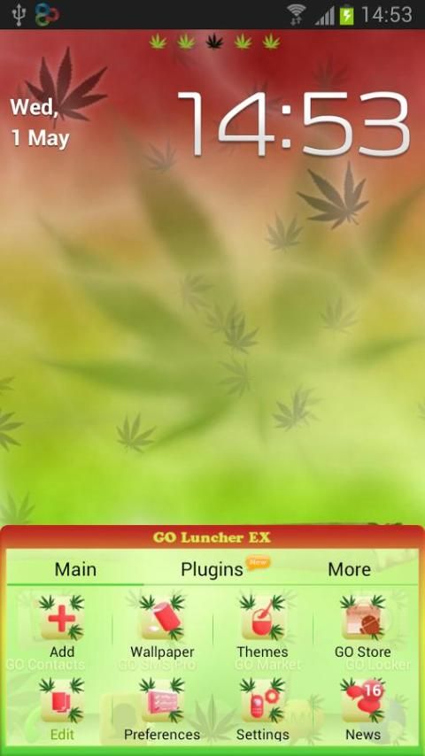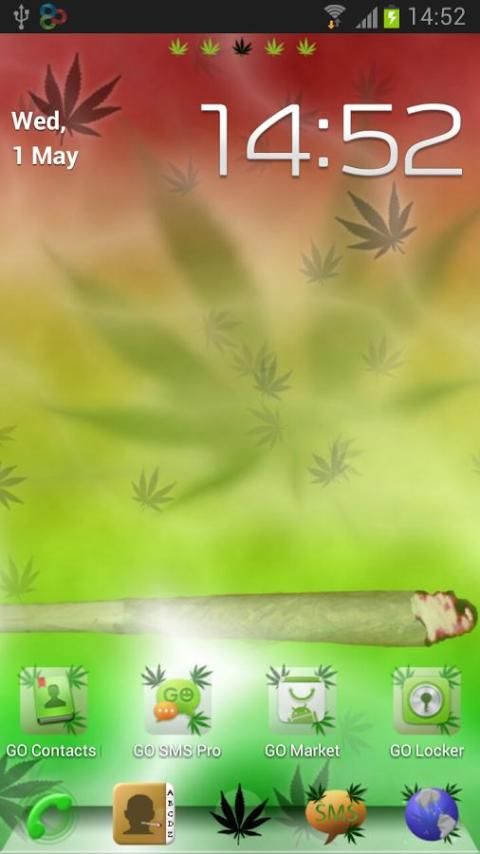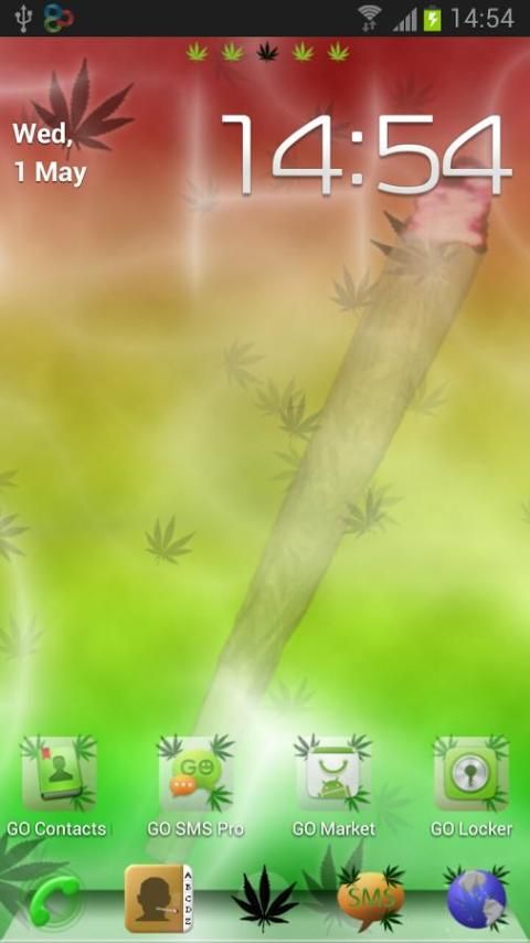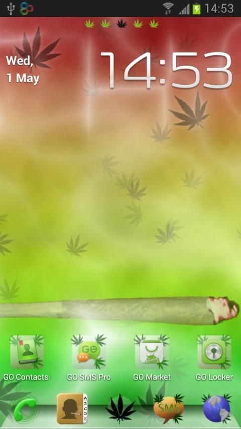 Take pleasure from green cons with element of weed. Be a really rastaman. Let Bob Marley be proud of you. By the many valued and desired, waking controversy among the people, the most widespread and most commonly used on. Now the world will beautify your desktop to your hone. Perfectly integrated into marijuana leaf motifs, burning joint, subtle game clear and ransparent colors delight the eye, and at the same time not cause difficulties in quickly finding himself on the phone screen. Each icon has a marijuana leaf motif that visually complements the content of the theme, the page on the screen are not marked with numbers.