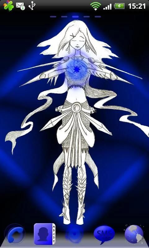 Wallpapers are manual work designed specially for this theme. Woman on the picture wears chain mail. She have long earrings and diamond on the skirt. She is focused on the spell. She will be fight with somebody.