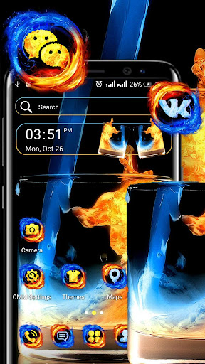 ✱ This theme offers both decent architecture and great features. Download one of today's best themes to design your phone and be a trend-setter among friends. Also the single brush of this Fire Flame & Ice Water wallpaper would bring you joy..