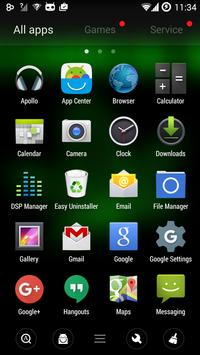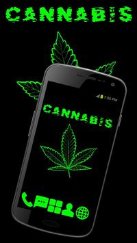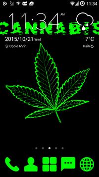 Theme shows green leaves of marijuana on black background. Icons and the word "cannabis" are also green. Everything look like illuminated. These effects of lights makes this app is very special.