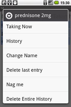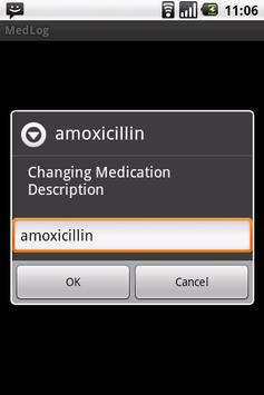 To change the name of a medication, pick 'change name' from the long press menu in the main view. This will change the name of the medication and will reflect throughout the history of this medication.