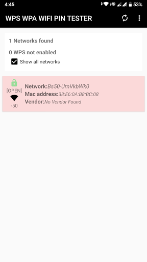 This app lets you check the vulnerability of your WiFi Router using WPS Pins by the method called pin bruteforcing.