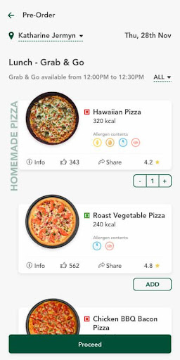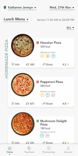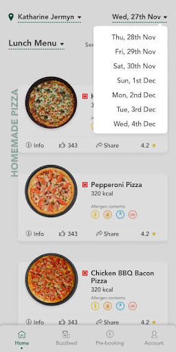 * Real-time comprehensive menu for current and future dates showing Food images, nutritional and allergen info.